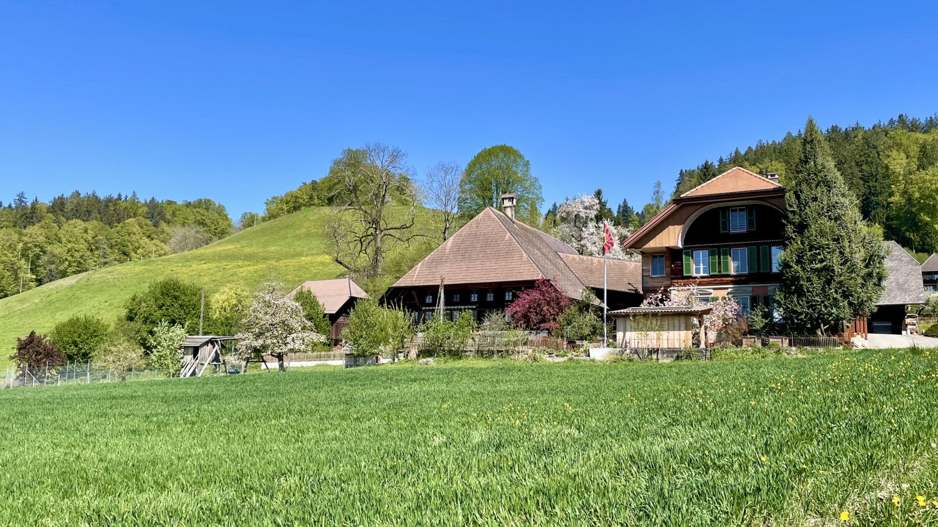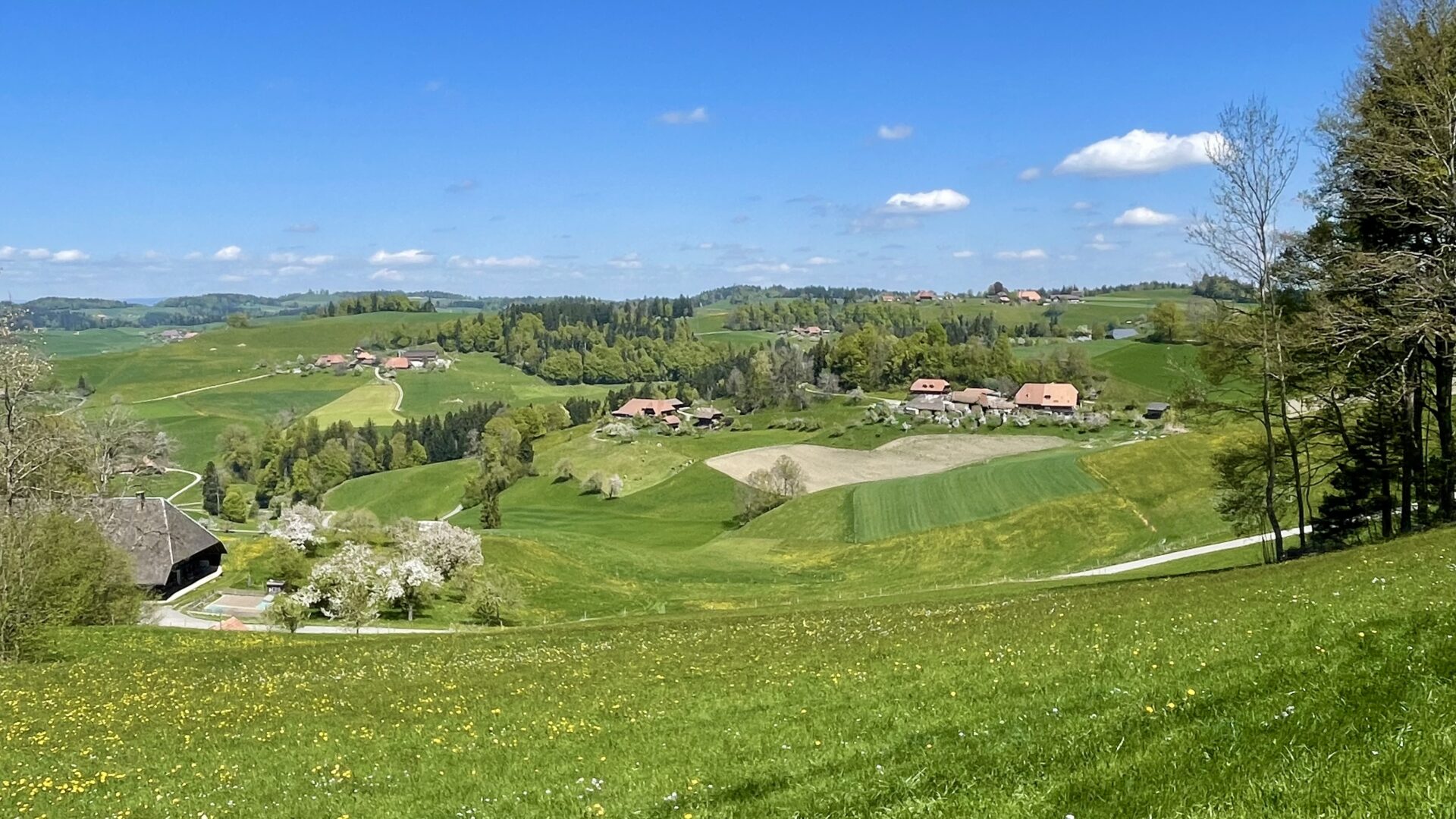 Diese Tour zählt zu meinen persönlichen Favoriten im Emmental. Sie vereint die Schönheit der typischen Bauernhäuser mit der weiten, ruhigen Landschaft dieser Region. Wer hier unterwegs ist, fühlt sich unweigerlich in die Mitte des 19. Jahrhundert versetzt – fast so, als wäre man in einem Roman von Jeremias Gotthelf gelandet.